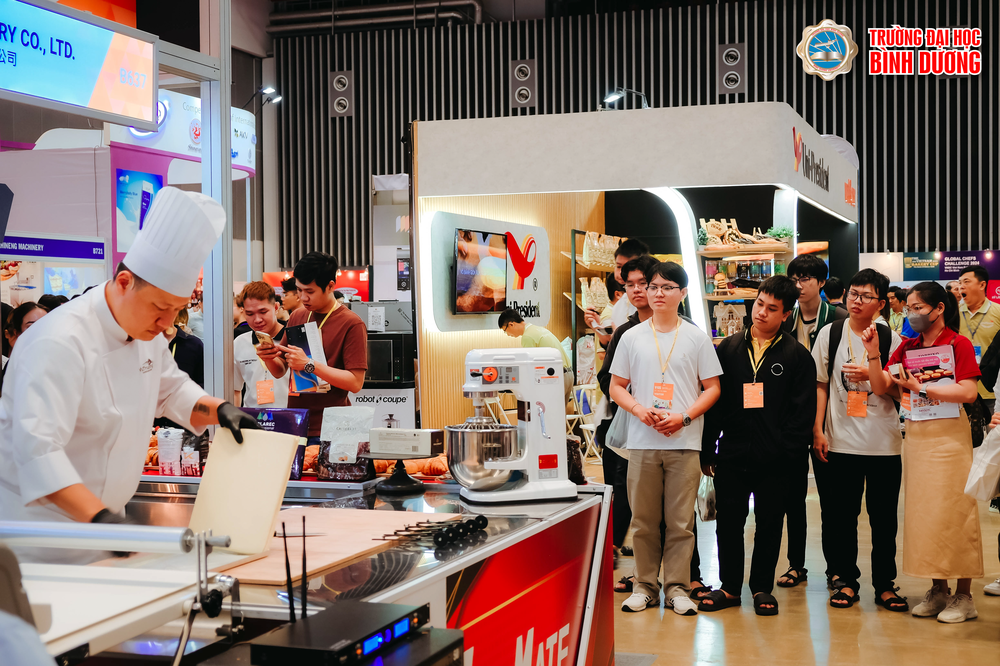 Sáng nay (13/12), sinh viên ngành Công nghệ thực phẩm Trường Đại học Bình Dương (BDU) đã có buổi tham gia Triển lãm Quốc tế Ngành Bánh (VIBS 2024) tại Trung tâm Hội chợ và Triển lãm Sài Gòn (SECC), TP.HCM. Đây là sự kiện quan trọng trong ngành thực phẩm, quy tụ gần 200 gian hàng của hơn 120 nhà triển lãm danh tiếng đến từ các thương hiệu trong nước và quốc tế.