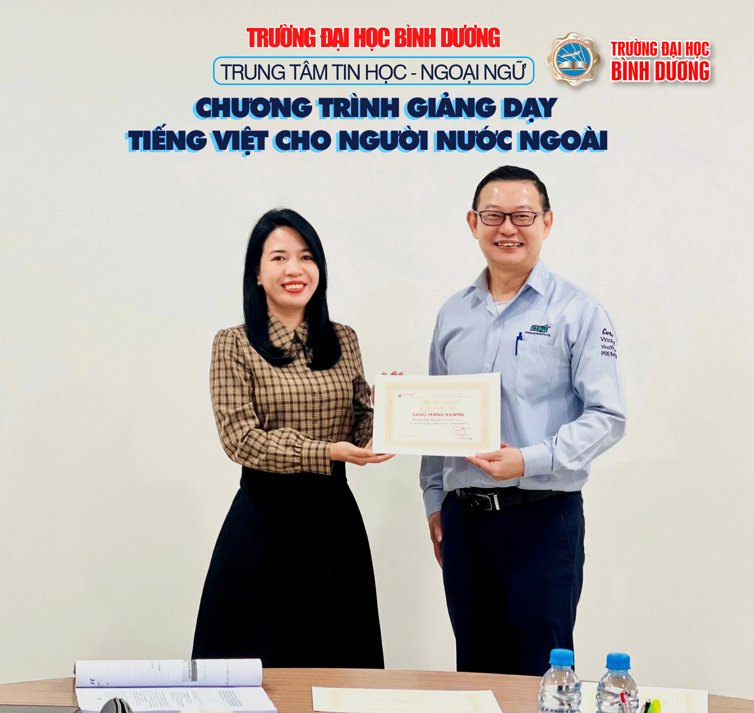 Trung tâm Tin học - Ngoại ngữ, Trường Đại học Bình Dương, tự hào mang đến chương trình giảng dạy Tiếng Việt dành cho người nước ngoài, giúp học viên không chỉ học ngôn ngữ mà còn khám phá văn hóa và hòa nhập nhanh chóng vào cuộc sống tại Việt Nam.